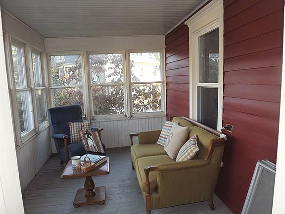 This Charming 2 story home situated on .97+/-acres, offers much potential and features gorgeous Curly Maple Woodwork through out. The home has new replacement windows, built in bookcase in dining room. An enclosed sunporch on second floor. You can also finish the third floor for additional living space.