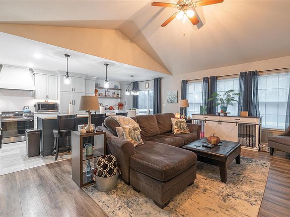 - Breakfast Bar, Kitchen Island, Custom Cabinetry, Pantry, Kitchen/Dining Room Combo, Open Floorplan, Vaulted Ceiling(s), Walk-In Closet(s), Double Vanity