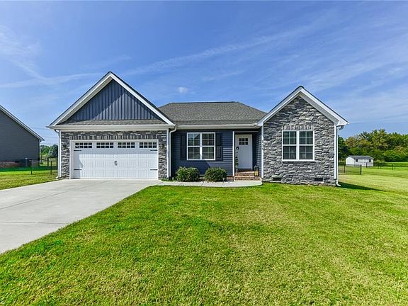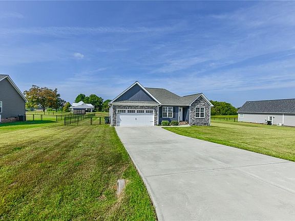 Move-in ready and beautifully maintained. This one-level 3-bedroom, 2-bath home sits on a spacious 0.69-acre lot in a small, quiet neighborhood and lives large with vaulted ceilings and a floor-to-ceiling stone fireplace. A dedicated office with a custom glass barn door adds style and function. The kitchen features a huge walk-in pantry and opens to an oversized rear patio and a fenced backyard, perfect for play, pets, and entertaining. Thoughtful upgrades include insulated garage doors, premium vinyl siding, and custom light fixtures. Easy, comfortable living with space where it counts. This home is a must-see!