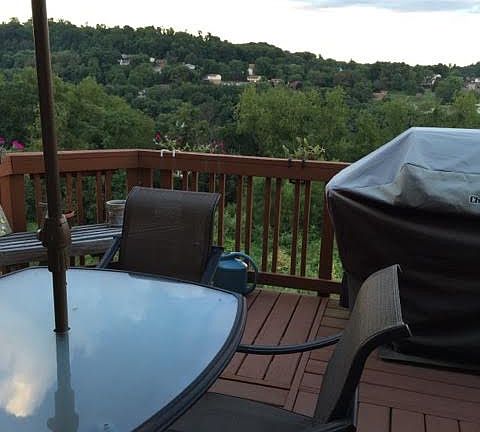 Manicured landscaping & lovely stone façade greet you. Split entry. Desirable open concept living/dining w/newer berber carpet, 2 tone paint & chair rail. A cozy gas fireplace w/decorative alcove highlight the living room. French glass doors in the dining room lead to a 10x12 generously sized deck. Cooks will love the large kitchen w/abundant cabinets & counter space, newer appliances, pantry, easy care laminate flooring & room for a small table. The counter tops were recently replaced in stylish laminate. ML laundry room. Updated powder room w/wainscoting & ceramic tile floor. All three bedrooms w/well-appointed closet space & ceiling fans. Master w/walk-in closet & tub/shower combo en suite. Pull down steps provide access to attic for extra storage space. LL w/additional laundry hook ups & storage space. This home has interior sprinklers, security system & a water filtration system. 2 car garage. Wonderful scenic views from the semi-private deck.