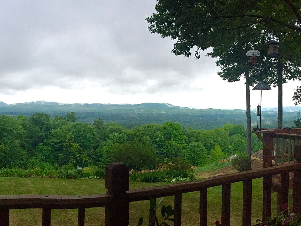 Watch the video tour! Commanding a breathtaking view, this well-appointed cape gracefully combines form with function.The yard has been elegantly landscaped with enchanting gardens complemented by exquisite stone work,including a Goshen Stone patio,while the rear of the house includes a built-in shed and a 3rd garage bay. This home was designed to take advantage of the setting.The living room,kitchen,and dining room have french doors out to the decks, while windows deliver the view inside.The living room features a large bay window with window seat that doubles as a cedar cabinet.The spacious dine-in kitchen offers cherry cabinets, butcher block and granite counters, a large pantry, and a bay window to take in the view.The sun room with french doors connects the two-car garage with stairs to the storage area above. The master bedroom has a luxurious bathroom and walk-in closet with custom cabinets.The partially-finished room in the walk-out basement is plumbed for a 4th bathroom.