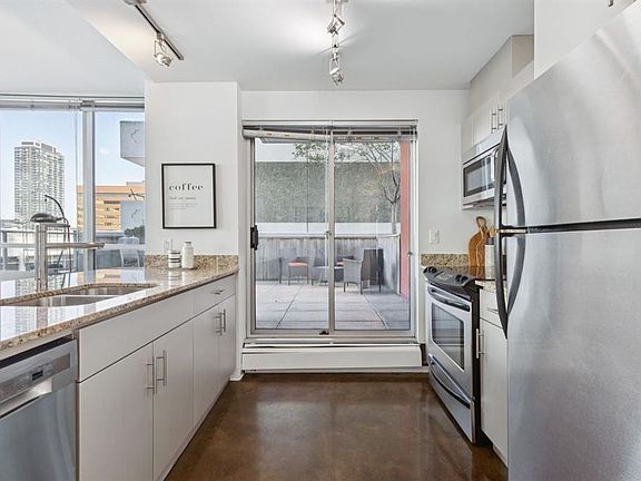 Airbnb-friendly and full of character, this stylish one-bedroom condo in the Colours building is your chance to own a slice of Calgary’s vibrant 1st Street District — whether you're ready to settle in or start generating income. With loft-inspired design, polished concrete floors, and an open-concept layout, this space feels effortlessly cool and tailored to your lifestyle. The real showstopper? A 350 sq. ft. private terrace that acts as your own outdoor living and dining room, complete with a raised garden bed and breathtaking city views — perfect for entertaining or just unwinding after a long day. Inside, the modern kitchen features stainless steel appliances, granite countertops, and an extended bar that’s ideal for casual meals or happy hour with friends. The bright primary bedroom includes sliding glass doors, a walk-through closet with built-in organizers, and a private ensuite with its own linen closet. You’ll also love the oversized in-suite storage room with laundry, plus a dedicated tech nook that’s perfect for working from home or tucking away a media setup. With three out of four walls neighbour-free, you’ll enjoy extra peace and privacy. A titled parking stall is included, and with Airbnb potential, this unit offers the kind of flexibility and freedom young buyers crave. Just steps to cafés, restaurants, nightlife, and the downtown core — this is more than just a first home; it’s a lifestyle upgrade waiting to happen.