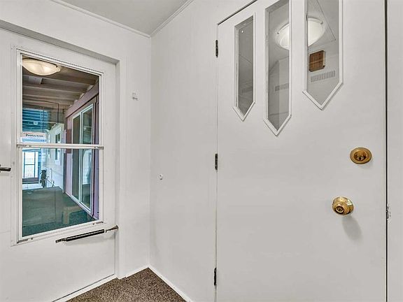 Welcome to this charming and well-maintained mobile home situated on its own lot, offering both comfort and convenience without the burden of monthly lot fees. Over the years, this property has seen many thoughtful updates, making it move-in ready and a perfect fit for first-time buyers, downsizers, or anyone seeking a private and affordable lifestyle. Step into the enclosed front porch entry, a practical and welcoming space that leads you into the heart of the home. The functional U-shaped kitchen provides excellent workflow and storage, complemented by a dining area featuring a charming bay window and built-in shelving. At the center of the home, the living room offers a cozy gathering place with sliding door access to a private covered deck—ideal for morning coffee or evening relaxation overlooking your beautifully landscaped backyard. Down the hall you’ll find a secondary bedroom, a nicely updated 4-piece bathroom, a comfortable primary bedroom, and conveniently located laundry tucked neatly into the central hall. The exterior of the property is just as impressive as the interior. The yard is fully fenced, private, and thoughtfully landscaped. Parking is never an issue with RV access and two stalls available at the front of the property. For all your storage needs, multiple exterior sheds are included. This home truly combines function, comfort, and affordability in one package. Don’t miss your chance to own a property that offers both indoor charm and outdoor enjoyment!