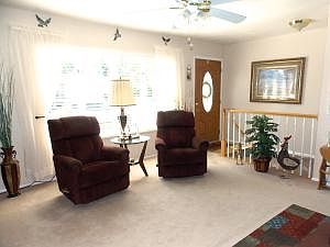 Beautiful brick home with newly redone kitchen back splash, sliding cabinets and ceiling lighting. New front door and back sliding door. New carpet in basement. Vanity and tile in basement bathroom all new. Plenty of storage space in basement and garage. Yard is fully landscaped with an automatic drip system to every flower pot, shrub and tree. RV pad with electricity and sewer drop. Wonderfully maintained home with low maintenance yard and great upgrades in the home. Master bedroom has access to backyard deck and has walk-in closet. Stairs in garage to access basement. 220 power in garage and storage shed.
