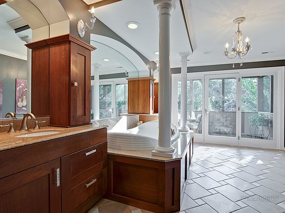 This is not your typical Colonial home--check out the master bedroom suite addition. This suite is like nothing else available on the market in Libertyville at this price. The newer master bedroom has vaulted ceilings, a sitting area, fireplace, and huge custom walk-in closet. The master bathroom has a sumptuous jetted tub, separate spa shower with multiple jets and double sinks. Through the master bath is a screen porch will be your private retreat for morning coffee or a night cap. Eat-in kitchen with granite countertops and newer appliances is open to the family room with fireplace. The English lower level is finished with recreation room, 5th bedroom and full bathroom. Beautiful outdoor spaces--covered front porch, two screened porches, patio and firepit area to enjoy the fenced yard. Conventionally located near Libertyville High School. Find out why so many people want to call Libertyville home: lively Main Street, farmer's market, concerts and easy access to Chicago via Metra.