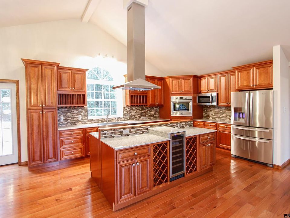 Welcome to this new ICF constructed home. The main floor features a beautiful open concept. The amazing kitchen has granite counters and stainless steel appliances such as the wine frig, wall oven and 6 burner cook top. The wood floors open to the living room and dining room . The dining room opens to the composite deck and back yard. The master bath features tile floors, double sinks and a jet tub and large shower. The lower level features a family room, 2 bedrooms and a laundry room. $5,000. deposit req.