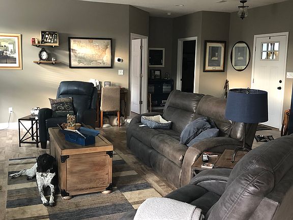 Low maintenance open concept 3 BD 2 BA craftsman style ranch home with 2 car garage (extended bay) in country subdivision with quick access to hwy 50, UCM and Whiteman. Kitchen has island/breakfast bar, tile back splash, stainless steel appliances and pantry. Large fenced back yard features a spacious stamped concrete patio ideal for entertaining, cedar privacy fence on the sides, unobstructed nature views with no one building behind you. Premium laminate hard wood flooring flows throughout kitchen, living room and master bedroom - great for small children and pets. Master bedroom has access to patio, features double sink ensuite with a tiled, luxury walk-in shower and pocket door to walk-in closet. All bedrooms are spacious with large closets for extra storage. Hall guest bath has cultured marble counter tops, ceramic tile flooring and tub shower. Separate laundry room. We love this home and expected to be here a long time - unexpected circumstances have forced relocation to another city. Since purchasing the home last year, we sodded the yard, added stamped concrete patio, front landscaping and fence.