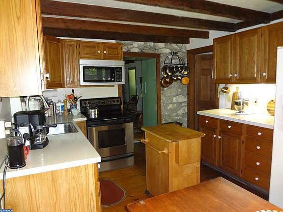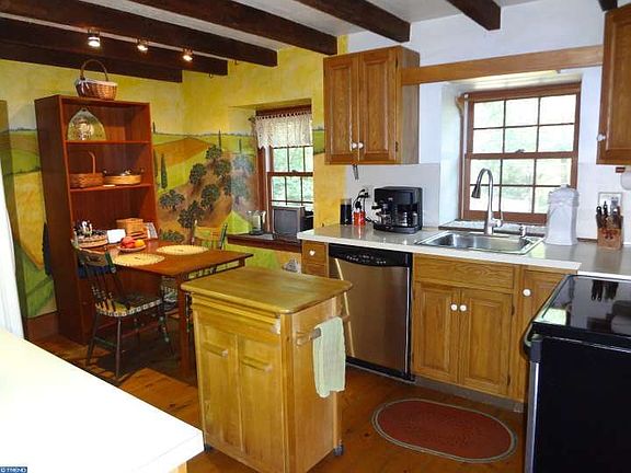 Unique history surrounds this stunning West Nantmeal property that dates back to around 1800's and became known as 'ROSE COTTAGE' in 1835 offers a superb blend of rich history and modern amenities with grounds surrounded by the historical stone fencewalls throughout the township roadways. The stone and frame house has been added onto and remodeled over time to become the charming and livable home of today. The interior is graced with exposed beams, deep set windows, random width wood floors, stone wall accents in many rooms, a handmade tile fireplace with stove, a winder staircase and a modern set of stairs and a hand-painted tile vanity in the master bath. The sun room opens off of a wood deck and overlooks Perkins Run as it flows under Rose Cottage Bridge (1914) into the Brandywine across the road on Wyebrook Farm. Little remains of Rose Cottage School inside but the space built as the boy's school is open to the ceiling and waiting for a loft and a new use after being used as a business for many years. This approximate 600 square foot space with separate heating can be closed off from the rest of the house or used as a great room for the family to enjoy. Two bedrooms have ceramic tile master baths and a third bedroom can be used as a sitting room. Storage closets and nooks make it easy to keep everything out of sight. An over-sized two car garage has an attached shed where a workshop can be located. Big trees and the solid stone walls of the house keep the inside cool in summer and cozy in winter. Two thirds of the property is woods and stream while the house is set nicely between two roads. A mortared stone wall surrounds the house portion of the property with dry laid stone walls framing the rest of the property. The property, known for when it was Rose Cottage School, is in an area that is being considered as a historical district. Historical maps, newspaper articles and other materials are available in the house for viewing. The Pennsylvania Turnpike as well as other state highways are easily accessed. Be prepared to fall in love with this house and property!!!