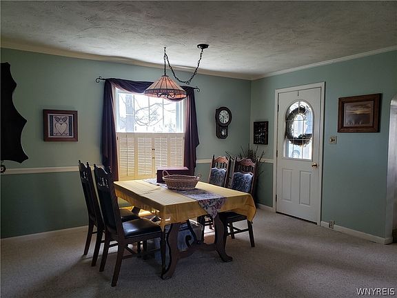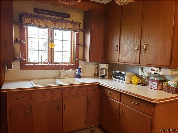 Well maintained two story home near 2 schools and downtown village business. Large backyard with additional outbuilding and 2 car detached garage with opener. First floor features formal dining, nice sized kitchen, full bath, laundry room, office and living room. Second floor has a sizable room to relax, watch tv and sit near the comfort of the artificial gas fireplace. A second story has 3 bedrooms and small office. The basement has exterior door and is contains gas hot water tank and other utilities. Plenty of room inside and out to make your next home. The Village and Town tax reflect the taxes with a veteran exemption.