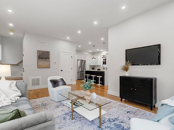 Welcome to east Watertown! New construction townhouse with 9 rooms, 4 beds, and 3.5 baths situated on a corner lot in commuter friendly east Watertown! This south facing unit is amazingly bright with beautiful finishes. Spacious and smartly laid out with living area on all three levels. The first floor is an open floor plan concept with a sun filled living room, designer kitchen, dining room, and office. The lower level is ideal for recreation/exercise/in-law space with a bedroom and full bath. The third floor has a primary bedroom with full bath and two additional bedrooms. There is a driveway with 2 car parking and an exclusive use patio and yard. The build includes spray foam insulation, Hardie board siding, Marvin windows, GE Café appliances, 3 zones HVAC, architectural shingle roof, and more. Minutes to public transportation, Coolidge Sq., Arsenal Yards, Brighton Landing, Cambridge, Boston, Charles River, parks, restaurants, and more.