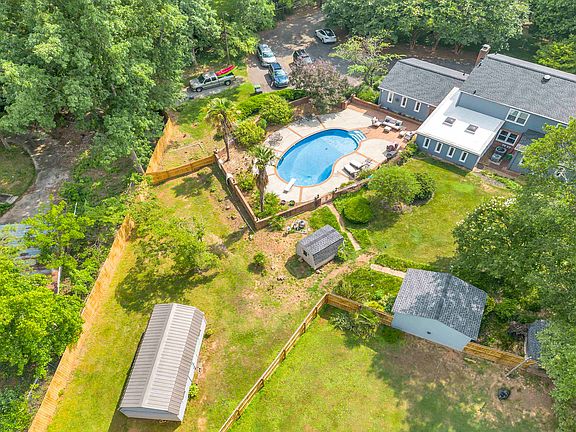 Welcome to 135 Nob Hill Road - 4234 SF, large 1.31 acre CUL-DE-SAC lot, owners suite on the main level, fenced yard, and a beautiful IN-GROUND POOL - all on the Eastside of Spartanburg! Tucked away at the end of Nob Hill Road, this house ‘on the hill’ has a vast amount of space for everyone. With a welcoming foyer, spacious living room with gas log fireplace, and functional office, the secluded OWNERS SUITE offers multiple options in its 27’x 22’ space - gas log fireplace, sitting area, two closets, laundry, and relaxing bath with double vanities, jetted tub, and separate shower. On the opposite side of the main level are the dining room, kitchen/breakfast area with fireplace, butler’s pantry, half bath, den with wet bar, and sunroom overlooking the back yard and recreational pool area. All kitchen appliances will convey at closing, including the new black stainless dishwasher and microwave which will be installed during the week of 6/12. Upstairs are three secondary bedrooms and two full baths - the front bedroom could even become a second owners suite with its 12’ x 12’ sitting/dressing area and private bath. The ‘great outdoors’ awaits with the in-ground pool and large patio area, along with three outbuildings for abundant storage and lawn equipment. The unique location of this property allows for complete privacy in a beautiful setting, while enjoying immediate convenience to award-winning schools, grocery, retail, and restaurants on the Eastside of Spartanburg - and only a 9 minute drive to the heart of downtown. It’s the ideal combination of a spacious home, a lovely location, and a beautiful in-ground pool with newer liner and pump!