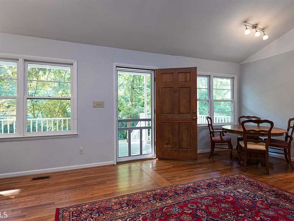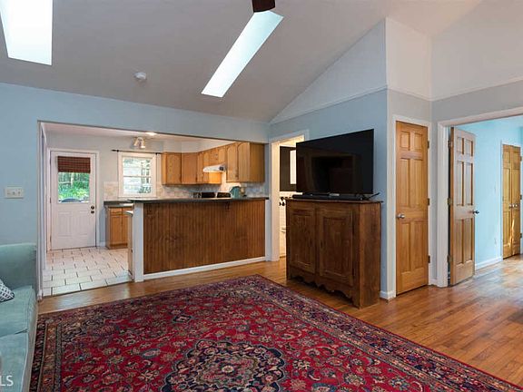 Charming in-town home with unparalleled location and privacy: Less than one mile from UGA, Dudley Park and downtown Athens, where you can enjoy fine dining and shopping. This home offers an open floor plan with skylights that provide natural light. Laundry closet has a stacked washer and dryer with room for pantry shelving. Both the front and back yards are low maintenance. The multi-level back patio and separate deck provide a great space for entertaining. The back is wired for surround sound. The covered front porch ensures peacefulness as you take in the natural beauty of Trail Creek Park, which borders this home.