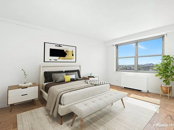 Skyline And Sunsets! Splendid oversized one-bedroom with a wall of windows that looks over Brooklyn to astonishing skyline views for miles! Enjoy dramatic sunsets while hosting friends in your spacious open living dining rooms. Entertain from your posh, modern, renovated kitchen with stainless steel appliances, Carrera marble countertops and a dishwasher. Retreat to your enormous bedroom with a floor to ceiling deep closet. Relax in your beautiful modern tranquil bath with soaking tub. Amenities at the friendly and sought-after luxury, Caton Towers, include a 24 hour doorman, onsite garage, laundry room, storage units, bike storage, and super. The building is pet friendly but please note there is a ratio for dogs. F/G trains at Fort Hamilton Pkwy are just 1.5 blocks away & B/Q trains are a 10 minute away (at Church Ave) and an express bus to Manhattan is on the corner, as is the newly built PS 130. Well-loved neighborhood coffee shops, farm to table dining, yoga, library and playground within three blocks. And the cherry on top is Prospect Park -- just a stone's throw away!