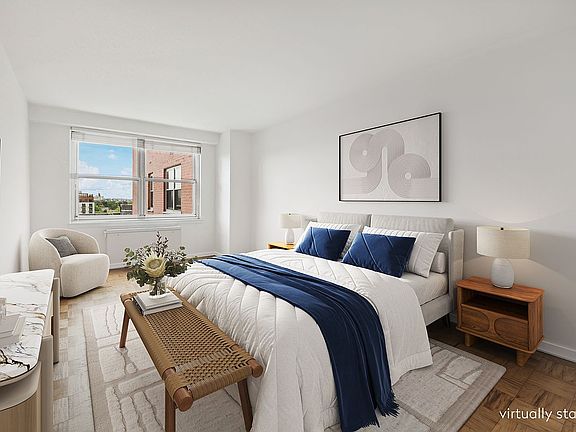 Say hello to your 24-hour doorman, hop on the elevator, and walk down the newly renovated hallway to your quiet, high floor apartment. Apartment 10T is sunny! The living area offers a generous and versatile space that is perfect for dining, lounging, and setting up a home office. The bedroom is large enough for a king-sized bed and dresser with room to spare.