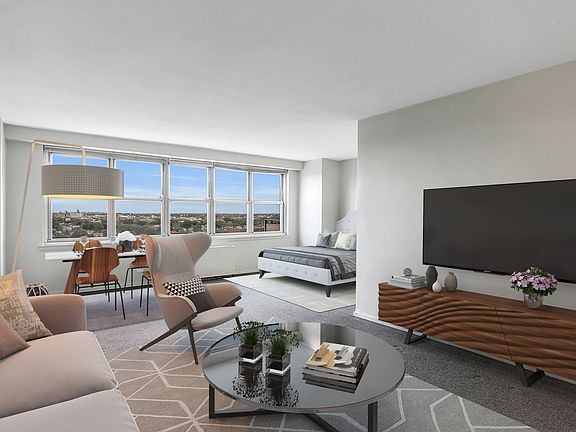 Renovated, move in ready. Large alcove studio on high floor with sweeping views of all of Brooklyn, See Prospect Park to the Rockaways, its amazing wide open yet absolutely no noise. Living here, you'll see Prospect Park come back to life this spring. The livingroom is very expansive & the alcove will comfortably fit any queen sized bed. Closet space is second to none, including an over-sized walk-in, plenty of room in there for your bikes. New Kitchen has Stainless steal appliances including dishwasher, beautiful granite counter-tops deep sink. New Hardwood floors through-out. This 24H doorman building on the Kensington / Windsor Terrace border is undoubtably the best building in the area. 5 minutes & your in Prospect Park. Several great coffee shops & diverse mix of restaurants within steps of building. Parking & Storage are Waitlisted. Pets are welcome, Building Dog % is now maxed out, As of today you could be first in line. Small Assessment of $13.25 thru 12/20.