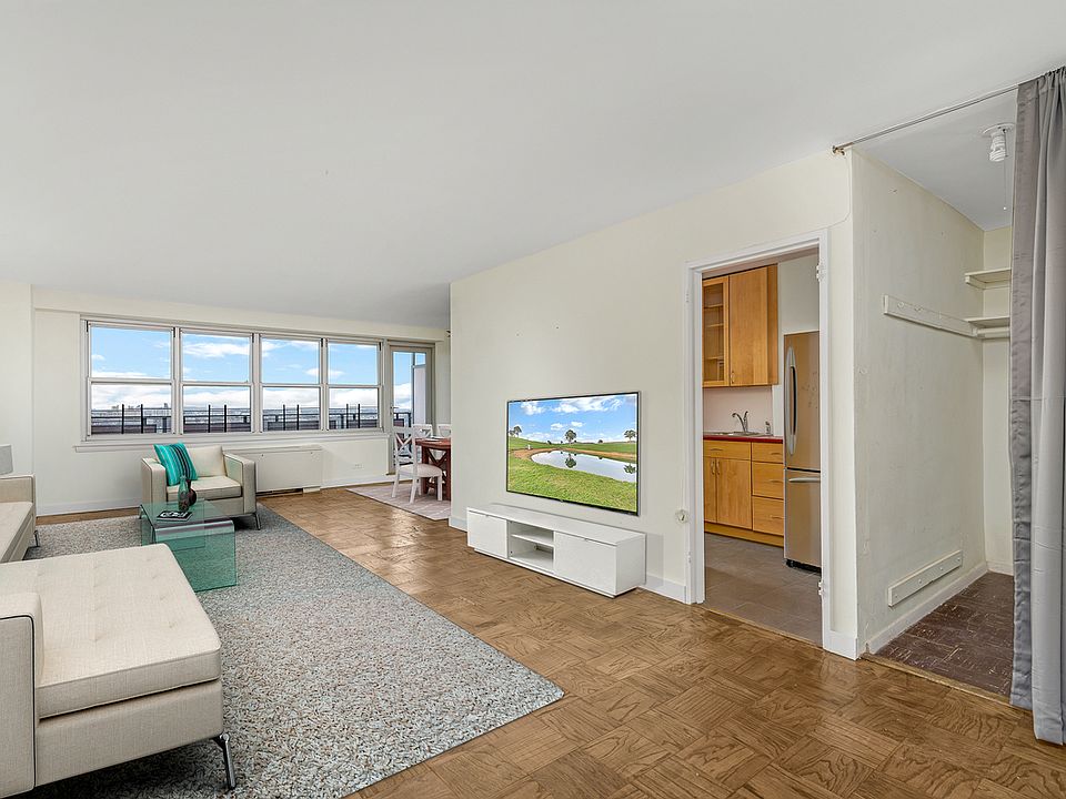 High Floor , the Most incredible panoramic views of all Brooklyn from the Rockaways to the City. Watch Prospect Park go through the seasons. Apsolute Stellar Apartment. The space is amazing; huge L living room, pass thru kitchen renovated & you can make open plan if you like. opens out to the dining area and beyond with a door leading out to your huge 18ft balcony, This is living and entertaining at it's best. There is room for your outdoor furniture and lots of plants and flowers. Morning coffee, dinner parties, evenings sipping wine and enjoying the night air will all become a part of your daily life & it's so quite, What a joy to watch Prospect Park come to life this spring. Your bedroom is enormous and can easily accommodate a king size bed, a dresser, an armoire and whatever else you want, And you have a huge closet! There's also a double closet outside your bedroom and a HUGE walk in closet to the left of your front door entrance. New Hvac units bring you heat & AC. Caton Towers easy the best building in Kensington on the Windsor Terrace border, close to the F and G trains and walking distance to the Q and B. And right on the corner is the express bus (15 minutes to Wall Street) This is a full service building with 24 hour doorman and live-in super 5 min stroll to incredible Prospect , bike and follow the path along Ocean Parkway to amazing Coney Island. Great restaurants and cafes nearby; Der Pioneer, Wheated, Hamilton's, Brancaccio's, Parade, Steeplechase Coffee, Thai Farm to name a few. Cats allowed and dogs on approval.