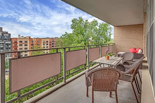 Unquestionably the best two-bedroom available. Perched high in the treetops, you'll have both greenery and city views. This enormous two-bed, two-bath in the most coveted full-service building on the Windsor Terrace/Kensington border is move-in ready. Wall-to-wall windows face south west onto your own substantial 26' x 6' private terrace with room for dining and downtown views. The sunsets are divine and you'll never tire of sharing time here with friends. Hardwood floors are found throughout and a large, renovated pass-through kitchen with stainless-steel appliances opens onto a dining alcove. The kitchen can happily stay as is with miles of quartz counter space or be opened to the large L-shaped living area for your preferred look. Down the long hallway, both bedrooms are generously proportioned. No expense was spared in renovating the two bathrooms; the ensuite features Gröhe fixtures, including a three-setting rainshower. Endless closet space. New central air units in each room are thermostat controlled. Caton Towers is a luxury, full-service, 24-hour doorman, elevator building with stable financials. Just a block from the express bus, the Fort Hamilton F/G subway stop, and a quick walk to the B/Q, this home is steps to all that Kensington has to offer: stroll five minutes to incredible Prospect Park, bike and follow the path along Ocean Parkway (America's oldest bikeway) to amazing Coney Island; sample the many new restaurants and cafes nearby, including Der Pioneer, Wheated, Hamilton's, Brancaccio's, Parade Café, Steeplechase Coffee, La Loba, and Thai Farm Kitchen to name a few. Zoned for D15 schools. Parking, storage, and bike room waitlisted. Cats allowed and dog on approval once quota allows.