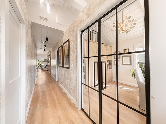WATERFRONT PROPERTY ON SOUTH PINE CREEK! This inlet leads to the sound. Nature paths lead to South Pine Creek Beach. Bring your boat and dock it right here. All inclusive rental even including cleaning service twice a month. Furnished with everything you need including linens, all kitchen related items, towels, sheets, paper towels, toilet paper. All utilities included, including great cable television package fiber optic internet, electric water, gas, 2 large screen tv's, tesla charger, floats, kayaks, paddle boards, gas grill, gas firepit, manmade beach, lounge chairs outdoor table with umbrella, out door. shower, plenty of parking! Landscape and lawn included. Wake up to water views and plenty of nature. Private beach access across the creek. Walk the nature paths or walk to play golf at the par three or play ball at the near by field, or tennis right down the road. This rental is pure serenity on the water. Open floor plan with 2-3 bedrooms, third bedroom is bedroom with murphy bed and office area with printer; updated throughout including baths and kitchen . Charming home is ready for your enjoyment. Nothing to do but bring your clothes and personal items.