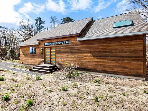 Wellfleet Contemporary, recently built, with minimal usage, energy efficient, 2 bedroom 2 bath home. Open concept kitchen/dining/living area with main bedroom with private bath and guest bedroom with shared bath.. Engineered for two loft bedrooms above each first floor bedroom with about 240 SF each.. Woodland views of fresh water marsh on the property. This lovely home is centrally located and just a short drive to the beautiful sandy beaches, marina and charming main street of Wellfleet.