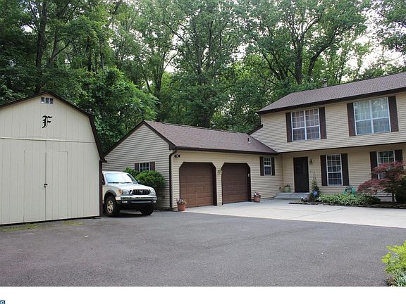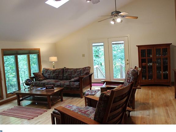 Tranquility awaits with this beautiful home tucked away on over 3 wooded acres. Watch the seasons unfold from every window in this meticulously maintained home. There are hardwood and ceramic tile floors throughout. Enter through the front foyer that is flanked by the large living room. The back of the home has a dining room area with a french door to the backyard, a completely updated kitchen and a sunny breakfast nook. This leads to the huge great room with a vaulted ceiling and skylights. Totally surrounded by walls of windows, the views from this room are incredible. The first floor has a powder room and a separate office that could be a 4th bedroom. Upstairs there are three nice sized bedrooms and a remodeled bathroom with heated floors. There is a full , dry basement that can readily be finished for additional living space or used for storage. Add the two car attached garage and the huge shed and you have it all. The wildlife and nature will not disappoint.Close to area bridges, Rte 295,and the NJTPKE. Call today to view this piece of paradise!