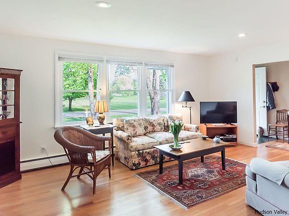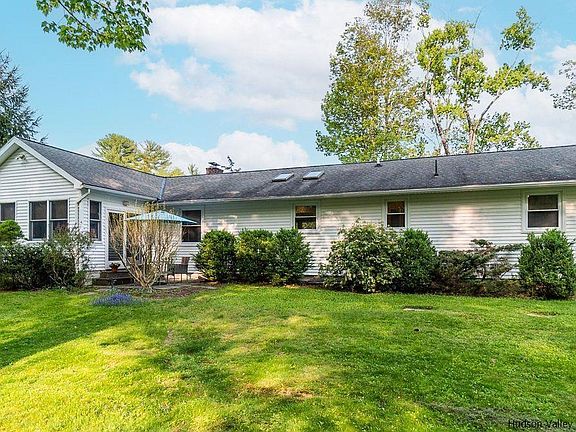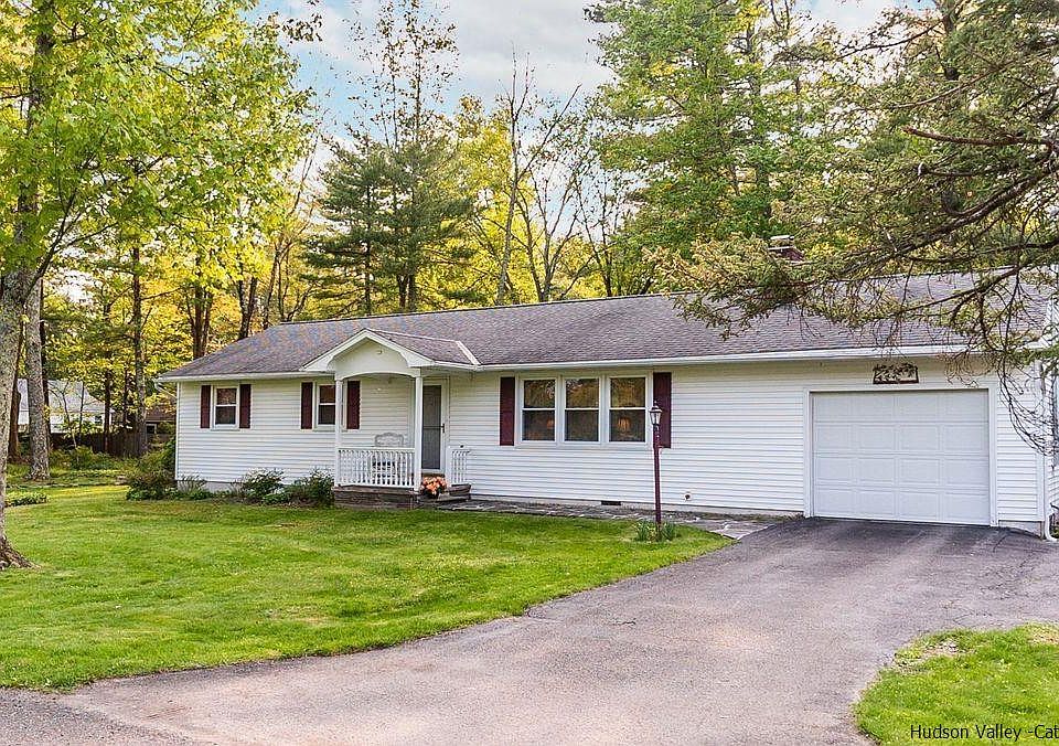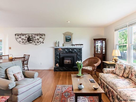 In the heart of Woodstock Village this move-in-ready, one level charmer is tucked away on one of the most coveted streets in town. Steps from everything yet very quiet and peaceful with a level and large backyard for entertainment and stargazing. A welcoming entryway leads into this immaculate home which has been updated and very well loved. Natural light pours in through skylights and windows highlighting wood floors and an open plan living space. The cook's kitchen offers loads of cabinet space and plentiful Caesarstone quartz countertops. The wing to the left leads to a spacious primary bedroom with an en suite bathroom, a guest room and main hall bathroom. To the right of the living/dining area the space opens up to a bright and sunny family room with sliding glass doors out to the patio and backyard beyond. The yard is mostly fenced and features a really interesting variety of lawn and woods for watching birds and wildlife. This is a very manageable and lovely home for anyone seeking a full time Woodstock country home or weekend pied-a-terre. Close to all the shops, restaurants and NYC bus. Updated within the last several years, the well maintained systems including a generator, replaced windows, heating system, appliances, and bonus of town water and sewer all add up to low stress country living.