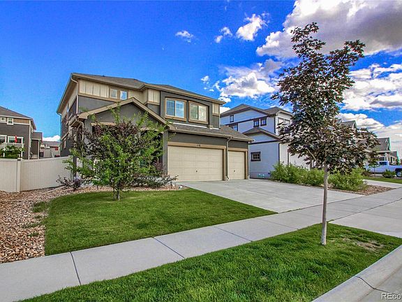 Welcome to this amazing two story home in the serene Eire Highland neighborhood. As you enter you will be greeted with soaring 9 foot ceilings and gleaming floors which lead into the large family room. You will love the beautiful fireplace and many large windows, allowing for plenty of natural light to pour in. This is an open floor plan and flows nicely into the spacious kitchen, which features stainless steel appliances, large (5x5) kitchen island, beautiful cabinetry and french doors opening to the pantry. 1/2 bath also on the main level. Retreat upstairs to the master bedroom which includes an en-suite bath and walk in closet. The upper level is complete with two more bedrooms, full bath and great loft area - perfect for an office or lounge area! The basement (with 9 foot ceilings) is unfinished, awaiting your special touch. You will love the expansive three car garage with plenty of space to store your favorite Colorado toys! Step outside onto the back patio with family and friends and enjoy the large fenced yard. The HOA fees are included in taxes and includes maintenance and access to the community swimming pool and park two blocks to the east. Easy access to I-25. Erie offers the most spectacular views of the Rocky Mountains. You will love the views, you will love this home, you will love it all!