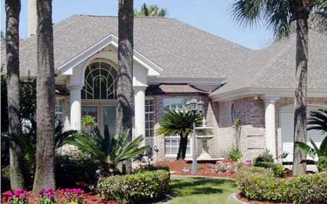 PANAMA CITY BEACH Private-Estate 4BR/4.25BA Formal-Office 3,000 SQ FT, Brick Home with Cabana Pool House, Large Screened Pool/Atrium. Iron Gates with Brick Columns and Fence Surround Private Gardens and Property.
