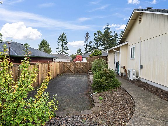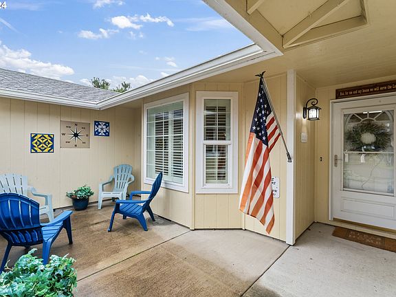 Welcome to 135 Park Village Loop, a beautifully maintained 3-bedroom, 2-bathroom home in the desirable Park Village neighborhood of Florence, Oregon. This charming property has been thoughtfully cared for and offers a blend of comfort and functionality, perfect for any lifestyle.The living room greets you with vaulted ceilings, a bay window that floods the space with natural light, and an electric fireplace for cozy evenings. Just off the living room, the open dining area connects seamlessly to the kitchen and features a glass slider that leads to a covered patio, creating the perfect flow for indoor-outdoor living.The kitchen is a chef’s delight with stainless steel appliances, a breakfast bar, a built-in desk, and a skylight that enhances the bright and welcoming atmosphere. The primary bedroom offers a serene retreat with vaulted ceilings, a walk-in closet, and an ensuite bathroom complete with dual sinks and a roll-in shower.Two additional bedrooms provide versatile options, with one serving as a cozy guest room and the other transformed into a functional craft room featuring built-in cabinets, bookshelves, and a desk.Outside, the beautifully landscaped yard offers a peaceful escape, while the large wood-fenced RV parking area is a unique feature for outdoor enthusiasts or those needing additional space.This home is a rare gem in an excellent location, combining immaculate care with thoughtful design.