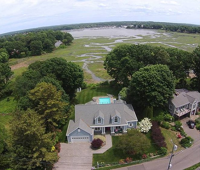 Stunning home with beautiful water views of the Branford River and Harbor, located in desirable Pawson Park. This home offers the best of everything - a wonderful neighborhood, gourmet kitchen with top of the line features. Deck overlooks the heated in-ground pool with beautiful stone work. Main floor includes the Primary Suite, LR, DR, Study, Kitchen and Laundry. The living room is accented with vaulted ceilings, gas fireplace with gorgeous arched windows. The upstairs features 3 bedrooms and 2 baths. The lower floor has a giant recreation room that opens to the pool/deck areas. State-of-the art geo thermal heat/air. Deeded beach rights to Long Island Sound; NO flood insurance. Easy access to Yale, New Haven or New York by train or car. This is truly a MUST SEE home!! 1,330 sq ft Recreational Room with half bath on Lower Level not included in Town square footage.