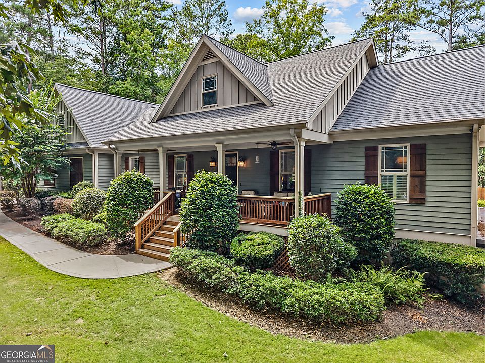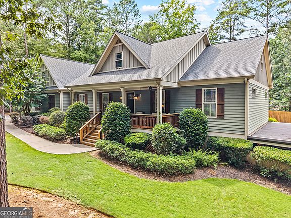 You will love the location of this fabulous One-and-A-Half home, situated in the Phoenix Lake neighborhood, just off Old Phoenix Road. It has a finished terrace level and an unfinished upper level. It is convenient to shopping and restaurants. There is also a community boat ramp for access to Lake Oconee which gives you access to the main part of the lake and is close to the Sunset Marina for fuel. This home sits on a big 1.35-acre lot and has two driveways for plenty of parking. One end of the house has a covered parking structure perfect for storing your boat or extra vehicles. The side-entry garage holds 2 more cars. The front porch welcomes you into the home. Inside this home, you will find a lovely floor plan with a split bedroom setup. The secondary bedrooms can be closed off to the main living area as well. The stacked stone fireplace in the great room anchors the space with beautiful stacked stone and custom bookcases on either side. The warm, rich hardwood floors run through this entire area where the kitchen, dining room, and great room come together for the perfect space to entertain friends and family. You can throw open the French doors to the covered screened porch to expand out into the open back yard overlooking the pool. The pool is perfect for hot summer days to sunbathe, cool off, and enjoy summer-time cocktails. The hot tub is perfect for relaxing after a long day's work. The large master suite is light. bright and sunny. The master bath has a large vanity with double bowls, a soaking tub, and a separate shower, plus a very large walk-in closet. The full finished basement has the coolest bar and game room, perfect for celebrations, game nights, or just get small togethers.. Don't miss the home theater room where lots of friends can gather for movie nights with ample seating for chairs or sofas. For those prized possessions, there is a vault room also on this level. The finished terrace level is about 1400 square feet finished on top of the 2068 of the main level for a total heated and cooled square footage of approximately 3468 square feet. Then there is an area that is unfinished that has a garage door perfect for storing your boats and other toys. Or it can be used for a workshop as well. There is a whole unfinished second floor about the same square footage as the main level. Rough plumbing is also in place for a bath or kitchen. There is also an exterior entrance to this area. So if you need more space, this area will be perfect for adding more bedrooms or a studio. The HOA is strictly voluntary and only $100 per year for lake access at the community ramp and use of the day-use dock. This will be a great investment with the neighboring lakefront properties pushing up into the million-dollar values. This is one of the largest off-water homes in this development. Enjoy the large lot that gives you plenty of privacy to enjoy the party pool with the bar and stools at the water's edge. How cool is that? You will love the stylish black iron fence around the pool area that will keep the furry family members safe while everyone is enjoying the pool and firepit.
