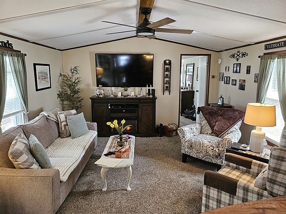 Stunning landscaping welcomes you to this highly desirable Sturbridge Co-op community in very quiet location. Great open floor plan with vaulted beamed ceiling in the Living room, kitchen and dining room. Kitchen has pantry, butcher block counter and breakfast bar with custom built-ins. Sun Room off the laundry area with access to the back yard. Primary bedroom has a wall of closets and access to full bath with abundance of built-ins. The second bedroom has a double closet and 1/2 bath. The carport is used as addition outside space. for entertaining. The neighborhood offers surrounding ponds and peaceful walking paths. Al appliances and generator included. Exterior painted 7/24, Furnace 3 years old, Stainless/double wall oil tank 1 year old. This is an 55 and over community. $25,000 park share is not included in price.