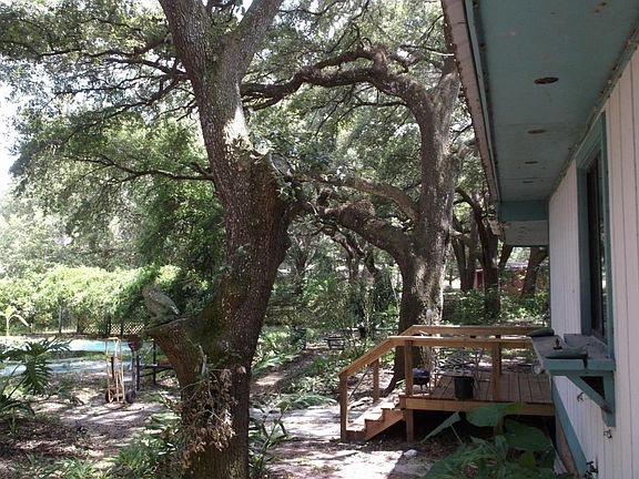 Relax in your own world. You may even hear your heartbeat. Buffered with large Oak trees, Azaleas along circular driveway, fruit trees, banana trees, aloe plants,large elephant ears and many flowers yours to enjoy.Brick pathways,small pool or fish pond,and concrete patio.On 1.01 acre-2 Bd home with attached carport. Kitchen, dining and living room with open concept. Living room has french doors to the yard and sliding glass doors to the carport. Master bedroom has sliding glass doors to an outside porch and large walk-in closet. Master bath with garden tub, separate shower,skylight and double sinks. 2nd room was customized with toilet, sink and laundry hook ups. Could be divided or left open for many uses. Large shed in back. Property located on small pond. Wants lovin again