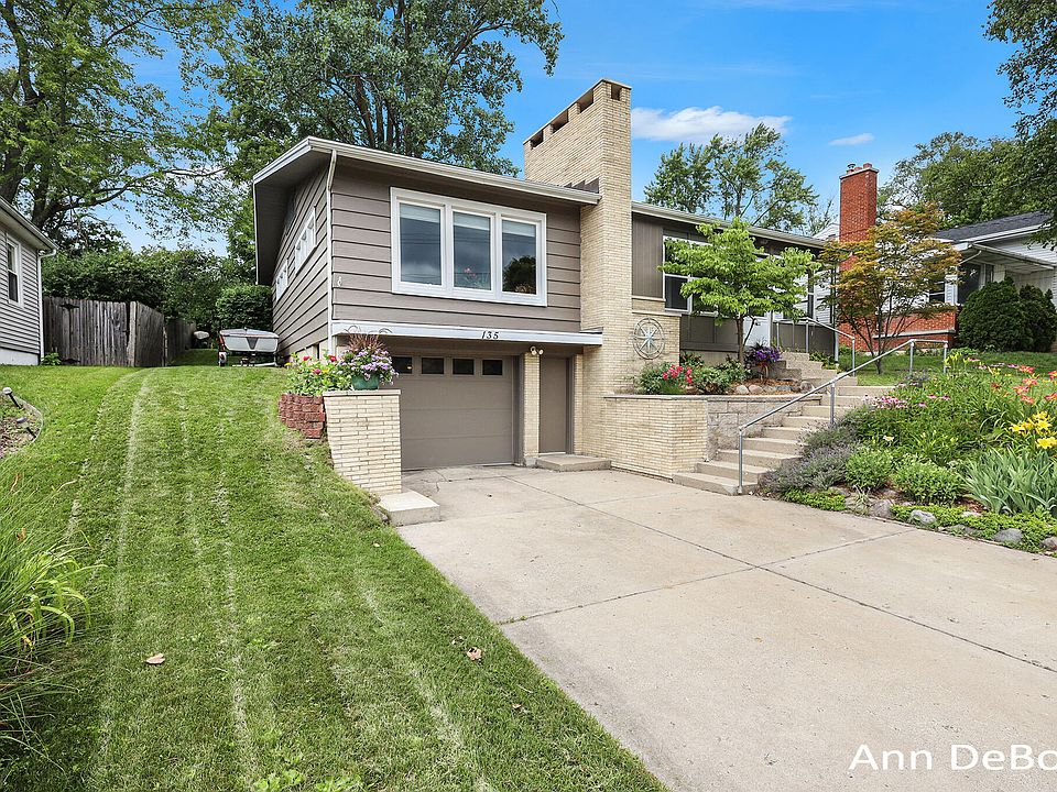 Lots of Mid-century features at 135 Plymouth! Clean lines, hardwood floors, lots of light. Main floor has lovely entry way, living rm w/ fireplace, dining rm w/ built ins, kitchen w/ SS appliances, 3 bedrooms, & full bath. Center bedroom has door to the deck