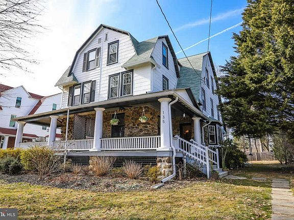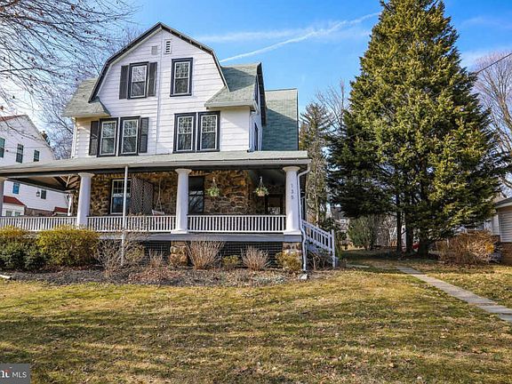 Welcome to 135 Poplar Ave, a beautiful stone exterior walk-to-Wayne location. This twin home is so spacious it feels like a single, with 5 bedrooms, 2.5 bathrooms with just under 2,400 sqft of living space. Situated on a large, lush, landscaped front and back yards with respective porches on both sides, the inviting and adorable front porch greets you with a vaulted ceiling equipped with ceiling fan and porch swing, the perfect place to sit outside with a cup of coffee and start the day! Inside you will find gorgeous hardwood floors (refinished in 2016) that span throughout the entire home and charming staircase. The cozy yet spacious living room is complimented by the abundance of natural light that pours through the home's many windows. Continuing on is the dining room decorated with an awesome light fixture, the perfect place for entertaining and holiday gatherings! Next, the gorgeous open and updated kitchen featuring tall ceilings, black granite counters with island, sparkling stainless appliances, white subway tile backsplash, and under counter lighting. Off the back is a large deck, storage shed, grassy yard and firepit; perfect for those summer BBQs. A powder room completes the main level. Head upstairs by the front or back staircase where you will find the second floor's master suite with an updated full bathroom with dual vanity and showertub combo which connects to a big walk-in closet with conveniently located washer and dryer that leads to the master bedroom. Rounding out the second level is another bedroom, or family room, with a gorgeous stone fireplace. On the 3rd level there are three generously proportioned bedrooms, one of which could be used as the master suite if desired, that all share an updated full bathroom. All this, plus, there is also a partially finished walk-out basement with bilco doors, built for a music room/office with sound dampening ceiling. This space is also great for all your storage needs and has a workbench with pegboard, and storage shelving installed. Updates also include replaced chimney (2016) and whole house water filtration system installed 2017. Create memories in the backyard with fire-pit area and enjoy all that Wayne has to offer Block parties, holiday parties, parades, and festivals, hay-ride, July 4th activities; the list goes on. Don't miss your opportunity to own this wonderful home in a truly special walk-to-Wayne location.