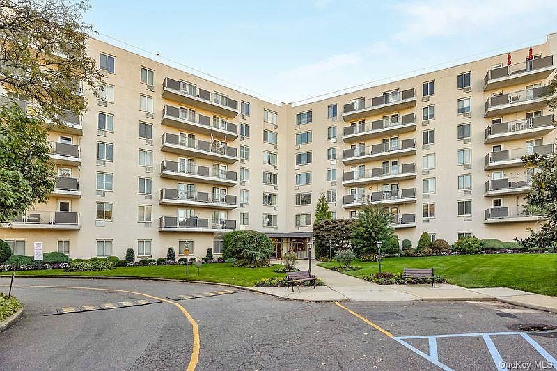 Welcome to Westbury Terrace! Spacious one bedroom condo (not a converted studio) with a balcony, 4 closets, and a dining room in a doorman building. Quiet exposure (not facing the railroad), assigned parking, guest parking, pool, laundry, ADA access, pet friendly (list of disallowed dog breeds), storage, recreation room, bike room, and super on the premises. Located near all area amenities: LIRR, shopping, schools, worship, Eisenhower Park. Commuters' delight with a LIRR station very close by. Monthly maintenance includes heating, gas, building maintenance, pool care, landscaping, snow removal, and doorman. Leasing is allowed after 5 years. Taxes shown include the village tax of $618 annually and do not reflect the STAR deduction.
