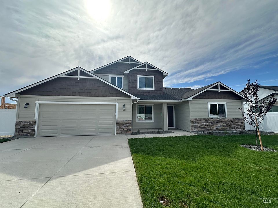 The St. Maries is a 5 bedroom 2.5 bath, two-story home at 2326 SQ FT. Featuring a tandem 22x46 3 car garage and 26x40 insulated shop. This beautiful home is located in Fruitland in the new Aspen Meadows Subdivision. This is a home that has room for the whole family! A long hallway leads you into the great room that features a gas fireplace.  The kitchen offers ample counter space, a spacious walk-in pantry, granite counter tops, custom cabinetry, & upgraded stainless steel split appliance package. The Primary bedroom is conveniently located on the main level and provides you with a large walk in closet and bathroom featuring dual vanities w/ granite counter tops, and custom tiled walk-in shower. Upstairs, you’ll find three bedrooms and a 10x19 bonus room. Outside you'll enjoy the 10x10 covered patio. Landscaping will include sod in the front, seed in the back, and full auto sprinklers wi/ pressurized irrigation. RV parking including concrete ribbon approach, 12fr RV gate, & compacted road mix behind the gate.