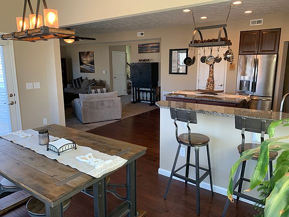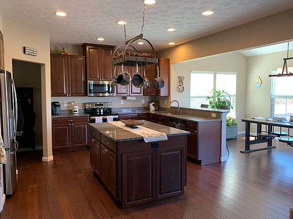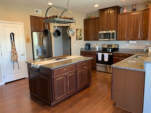 Better than new home just 10 minutes from Wright-Patterson AFB and situated at end of the street with no thru traffic. 4 bedrooms, 3.5 baths, oversized 3-car garage. Nearly 3100 finished square feet. Upgrades throughout the home include granite counter tops, custom kitchen island, wood floors, upgraded carpet, ceiling fans in all bedrooms, 2” faux-wood blinds throughout, and satin nickel fixtures. Oversized master suite on the 2nd floor has walk-in shower and huge walk-in closet. 3 additional bedrooms, a full bath, and large laundry room round out the upstairs. A large gourmet kitchen includes all GE stainless steel appliances, soft-close cabinetry, granite counter tops, counter seating, pantry, a custom island, and baker’s rack. The main floor also has a large family room with gas-log fireplace, breakfast room, ½ bath, and sitting room. Finished basement suite with rec room, additional sleeping area, full bathroom, and plenty of storage space in unfinished portion. The 3-car garage has been expanded 2 feet in depth, has built-in counter and cabinets, and over 150 square feet of custom ceiling-mounted storage to keep your gear stowed. The welcoming back yard is fully fenced and landscaped with maturing trees and plants throughout the yard. The large tiered deck is perfect for watching sunsets, or hanging out with great neighbors. Many perennial plants and flowers are just waiting for spring to emerge. Miles of paths, creeks, and ponds in Oakes Quarry Park are accessible just a few feet from your front door. You can even explore for fossils in the park among the giant rock formations!