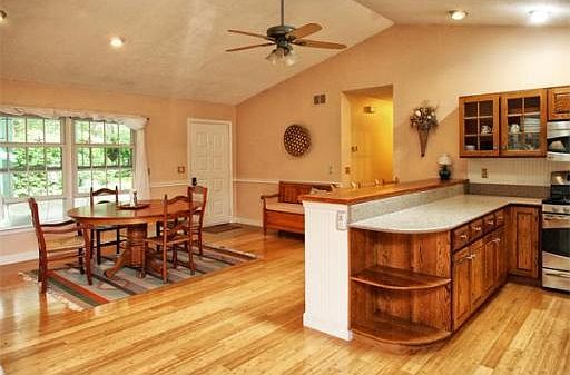 Beautifully remodeled, spacious Ranch with serene surroundings and association beach rights. Relax and entertain on the newly built farmers porch or on the Belgrade stone patio surrounded by perennials and koi pond. Owner has recently replaced windows, skylights, added Hardie shingles, bamboo flooring throughout, upgraded kitchen with Silestone countertops and stainless steel appliances. New furnace and water heater are being installed. The impressive sun-splashed open living room has cathedral beamed ceilings, gas fireplace, and a spectacular palladian window. A family room is on the finished lower level with a home office/craft room that has numerous custom built-ins. The custom touches on this home are wonderful. It is truly a gem.