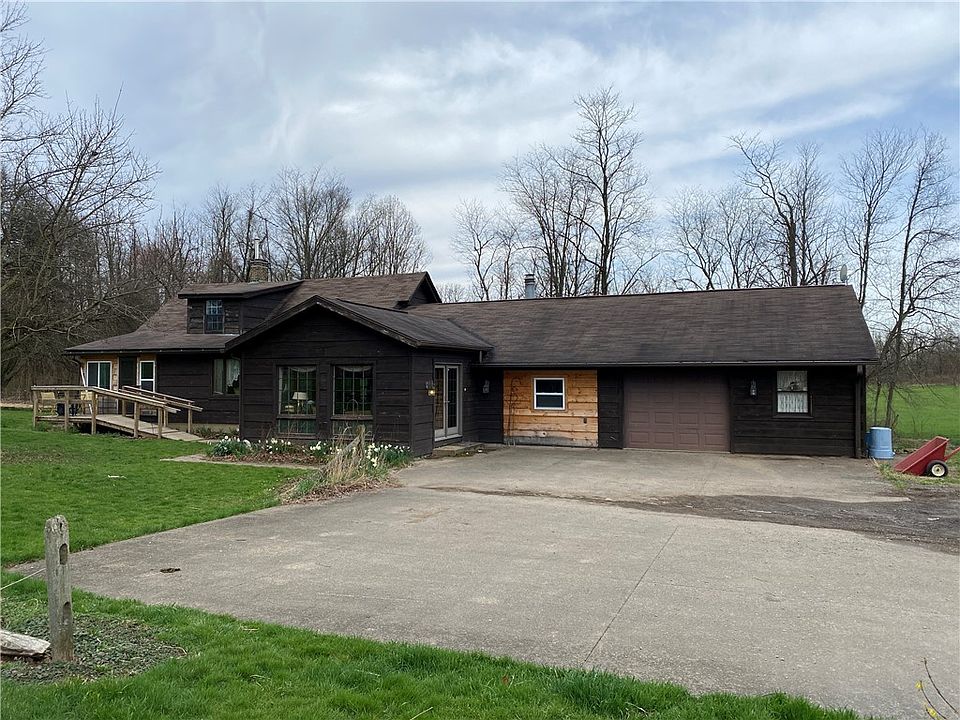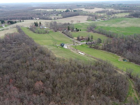 69+ quiet acres of rolling hills, fields, wooded areas & small pond. Drive down Renn Lane to this 3 bed 2 bath farmhouse complete with a barn for entertaining or farming. The home hosts a large kitchen, oversized dining room, a great room w/a vaulted ceiling & woodburning fp and a beautiful sunroom. 2 bedrooms on main, 1 up. Both bathrooms on main. The garage is 1 1/2 stall double deep. Basement is dry with oil furnace & woodburner. The home is in need of some TLC. The barn is in excellent shape w/newer roof and is setup for entertaining in the upper level. Perfect for a wedding, grad party or just because! The ground level has livestock stalls & a cement floor as well as water & electric. The land is breathtaking with wild life galore! Only a 25 min drive to Pitt Intl Aport.