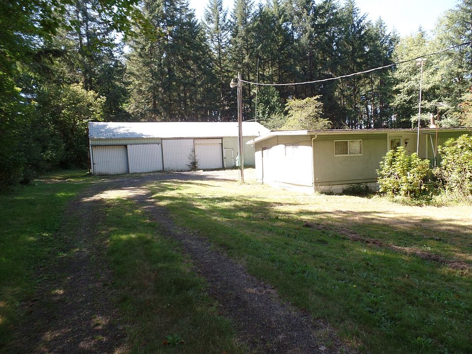Private dead end road location with commercial grade timber. Manufactured home and large 4 bay shop with 1/2 bathroom on over 6 acres. Quiet and peaceful spot adjacent to Winolequa park. Great opportunity to remove manufactured home and build!