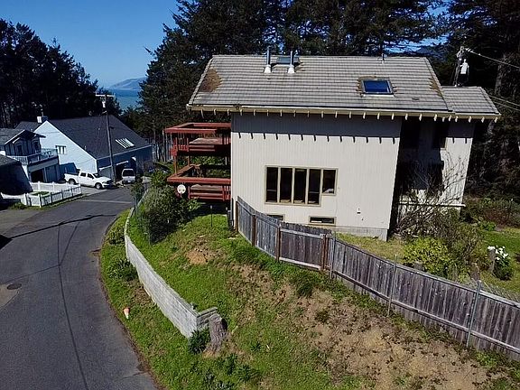 Perched majestically overlooking the shimmering and Historical Black Sands Beach, this three-story home exudes an enchanting Oriental charm that captivates from the first glance. A large fenced yard envelops the property, offering a private oasis for relaxation and outdoor gatherings amidst lush greenery, while commanding views and sounds of the Pacific waters are abundant. Step inside to discover a sanctuary of comfort spread across all levels. The master bathroom boasts a rejuvenating jacuzzi tub. Numerous expansive windows adorn each level, flooding the interior with natural light and framing picturesque vistas of the ocean beyond. Enjoy the coastal breeze and panoramic views from the decks extending off the second and third stories, ideal for savoring morning coffee or evening sunsets. Cozy evenings are enhanced by the warmth of two wood stoves, inviting gatherings and fostering a sense of tranquility. Additionally, a 2-bed, 1-bath in-law unit on the first floor offers versatile living space, providing endless possibilities for accommodating guests or generating rental income. This coastal haven embodies the perfect fusion of serene Oriental elegance, breathtaking ocean views, and modern comfort, promising a lifestyle of unparalleled beauty and tranquility.