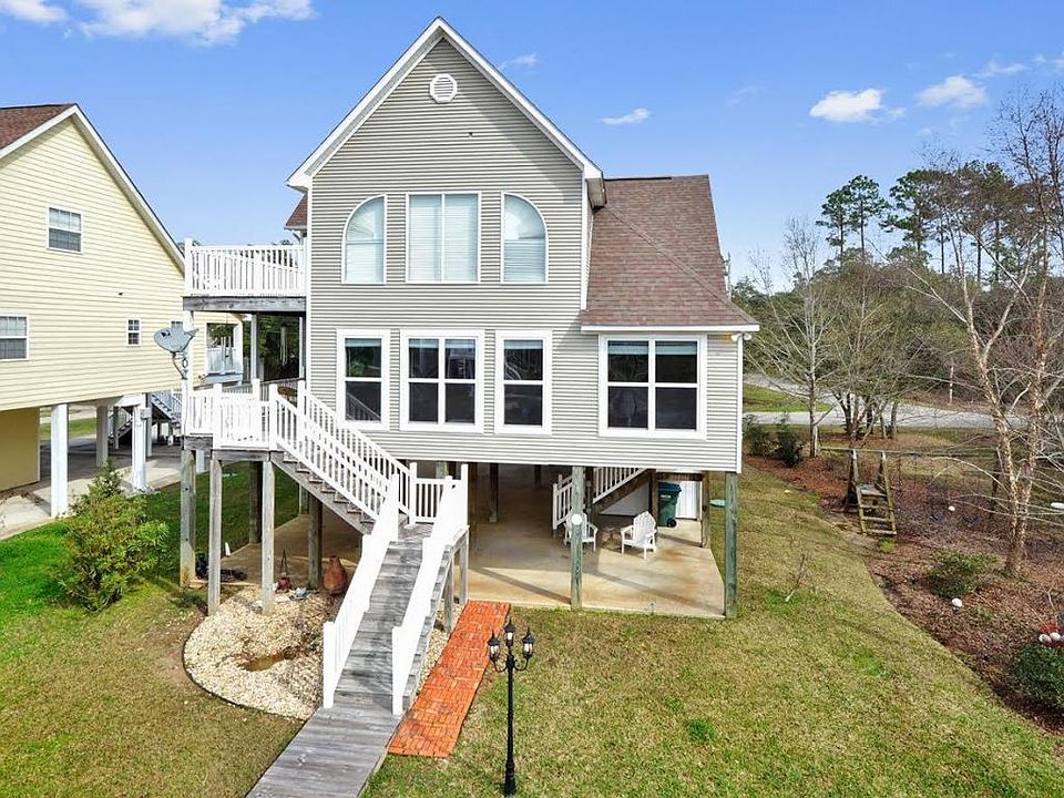 Custom-built waterfront home located within wonderful views of the bay of Bay St. Louis. Features include Hardwood & tile flooring, Custom wood cabinets w/ automatic retractable drawers, Custom tile counter tops, Crown molding, Soaring 20'' ceiling in the great room, wrap around windows on the west wall facing the water creates plenty of natural lighting and an awesome sunset view of the water and a Open kitchen floor plan great for entertaining. The entire top floor is the master suite, features large bedroom with French doors opening to your private deck overlooking the water, huge walk-in closet and large master bath with whirlpool tub. The home is well maintained, the owner has replaced the roof, installed a new deck, new deck lighting, new outside fans and replaced all the shutters.