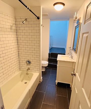 Beautifully Modern and Renovated 3 bedroom, 1 bath unit in a duplex. Quiet, wide street with lots of parking. One block to SEPTA Train station. Easy street parking. AVAILABLE JULY 1. Back yard with nice fence. Washer and dryer in unit. Rear 2nd story balcony. Central AC and Heat. Pets Allowed. First, last mont's rent plus security deposit. Reduced rent by $50/month for 2 year lease. One year, first month's, last month's rent and one month security deposit to sign lease and move in. $50/month discount on rent for 2 year lease.