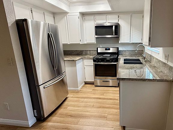 Discover the allure of Eastside Costa Mesa in this charming 3-bedroom, 2.25-bathroom townhome. With approximately 1200 square feet of living space, this condo features bright and airy rooms. The kitchen and bathrooms are elegantly finished with quartz countertops, and the entire home boasts new vinyl plank flooring. For your comfort, the home is equipped with central A/C and heating, and includes a refrigerator.