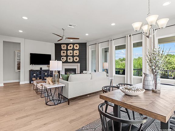 Welcome to the Madrid III plan by Beazer Homes, a stunning 4-bedroom, 3.5-bathroom home that perfectly blends modern elegance with everyday comfort. Located just minutes from Randolph Air Force Base with easy access to all major highways, this home is ideal for convenience and connectivity. Step inside to an inviting open-concept layout, featuring a spacious family room that flows effortlessly into the award-winning modern kitchen. This chef-inspired space boasts sleek cabinetry, high-end countertops, stainless steel appliances, and an oversized island-perfect for entertaining. The resort-style owner's suite is a private retreat, offering a spa-like ensuite bathroom with dual vanities, a soaking tub, a separate shower, and a generous walk-in closet. A large game room provides additional space for fun and relaxation. Enjoy breathtaking views from the covered patio, overlooking a tranquil green space with no back neighbors-ideal for peaceful evenings or weekend gatherings. Don't miss this incredible opportunity to own a beautifully designed home in a prime location! Schedule your private tour today! Pictures represents plan layout, not design selections.
