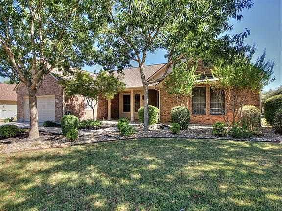 Sitting prettily on a choice cul-de-sac near the buzz of the Village Center, this delightful Sun City Texas San Gabriel Premier Home greets you with a Great Room with Dining, while nearby a charming Hearth Room is open to the Island Kitchen boasting a gorgeous granite counter top and fabulous back splash. A fun gas log Fireplace flanked by custom built-ins makes this the perfect space for relaxing with a best seller, or hosting a party. The Guest Bedroom touts a Private Bath. Handy Powder Room, too!