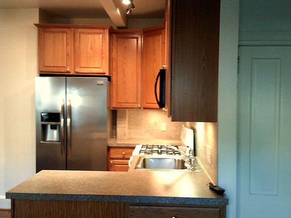 Newly Renovated 1 Bedroom/1 Bath Apartment With Private Entrance - New Hardwood Floors - High Ceilings - Ceiling Fans - Modern Appliances including Side-by-Side Frig With InDoor Ice Maker, Over the Stove Microwave Unit - Gas Range - Dishwasher. Central A/C - Full-Sized Washer & Dryer In Apartment - Extra Storage In Basement - Walk To Train, Shopping, Restaurants & Running Trails. Owner Pays for Trash pickup, landscaping & snow removal