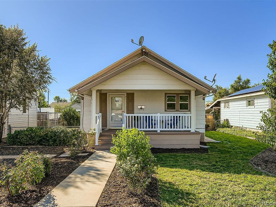 This cute bungalow blends timeless character with thoughtful updates, making it a perfect fit for first-time buyers, downsizers, or investors. Inside, you’ll find beautifully refinished original hardwood floors, fresh interior paint, including the cabinetry, plus new countertops, sink, faucet, garbage disposal, and updated kitchen flooring. Modern lighting and ceiling fans bring a fresh touch throughout. Major systems have also been updated, with a brand-new electrical panel joining the newer roof, windows, furnace, and sewer line—giving buyers confidence and peace of mind. The inviting covered front porch, added about twenty years ago, enhances the home’s curb appeal, while the spacious, fully-fenced backyard offers a private patio, raised garden boxes, and room to relax or entertain. Parking is a breeze with a detached garage (with opener), plus a deep off-street space perfect for oversized vehicles, trailers, or an RV. An attached storage shed provides even more space for tools and gear. Situated close to Brighton’s shops, restaurants, and schools, and with quick access to Hwy 85 and I-76, this home delivers classic charm, modern comfort, and everyday convenience all in one.
