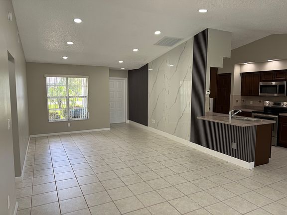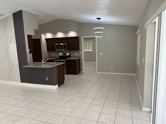 This beautifully remodeled 3-bedroom, 2-bath single-family home offers modern comfort and style in every detail. Featuring an open-concept layout with high ceilings, and a sleek accent wall, the spacious living area flows seamlessly into a contemporary kitchen equipped with stainless steel appliances and rich wood cabinetry. Both bathrooms have been completely updated with modern vanities, marble-look tile, and glass-enclosed showers. The home includes a screened-in private pool and patio, perfect for outdoor relaxation or entertaining. With a large fenced backyard, two-car garage, and plenty of natural light throughout, this property combines functionality with a clean, modern aesthetic making it an ideal rental for families or professionals seeking a move-in-ready home.
