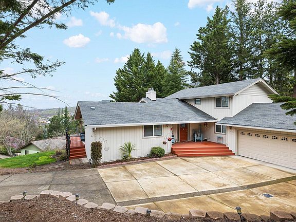 Magnificent East Medford Hills home on a huge .35-acre lot with views overlooking the Beautiful Rogue Valley! The sellers have completed many upgrades & extras through the years & the entire house is immaculate in every way. Main floor bedroom & full bathroom, with 3 more bedrooms & another 2 full bathrooms upstairs. Tons of high-end custom woodwork throughout. Nice sized living room w/soaring, vaulted, tongue & groove ceilings, and a fireplace w/gas insert. There is also a family room with French door access to a newer, large, wrap around deck. Gorgeous custom kitchen/dining remodel with new painted cabinets, granite counters, tile backsplash, stainless steel appliances & fixtures, under cabinet lighting, and a pantry area. Tigerwood hardwood floors in dining, kitchen & entry, new dual fuel heating & air system, reinforced foundation. Sprinkler system, fenced yard, lots of storage, Hoover/Hedrick/S Medford schools and a convenient location on a quiet street in the East Hills!